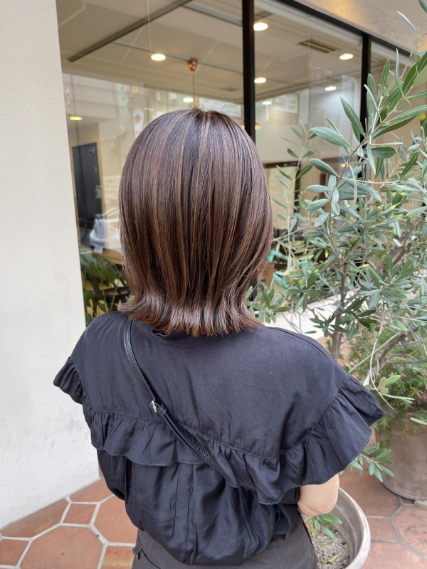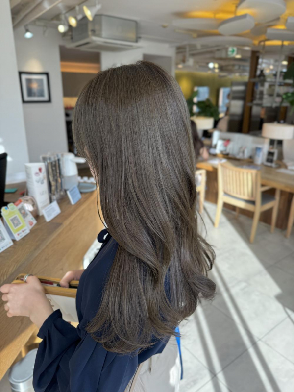 こんにちは!デザイナーのAyumiです!透け感のあるベージュにレイヤーカットの組み合わせおすすめです^ ^カラーの色持ちや艶を維持するためにも【Aujua髪質改善トリートメント】をプラスする...