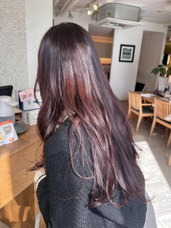 こんにちは!デザイナーのAyumiです!ブリーチなしでできるチェリーピンクラベンダーカラーおすすめです^ ^カラーの色持ちや艶を維持するためにも【Aujua髪質改善トリートメント】をプラスす...