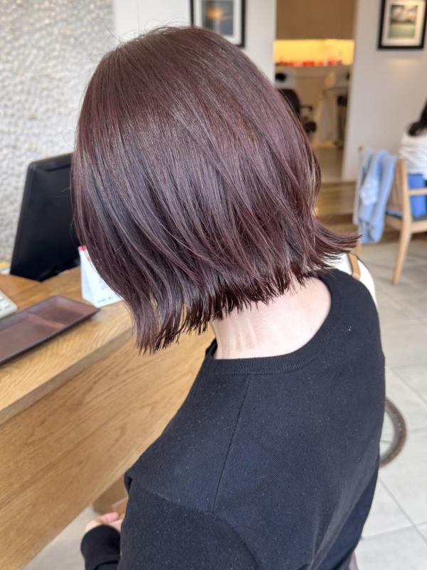 こんにちは!デザイナーのyukariです!^ ^4月のご予約お待ちしております!-ブリーチなしワインレッド-ブリーチをせずにワインレッドカラーは艶が出てくれてオススメです!ベースが明...