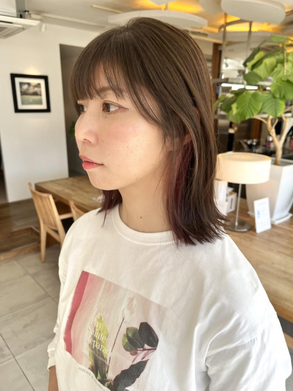 こんにちは!デザイナーのAyumiです!ブリーチなしでできる透明感たっぷりミルクティーブラウンベージュにレイヤーカットおすすめです^ ^カラーの色持ちや艶を維持するためにも【Aujua髪質改...