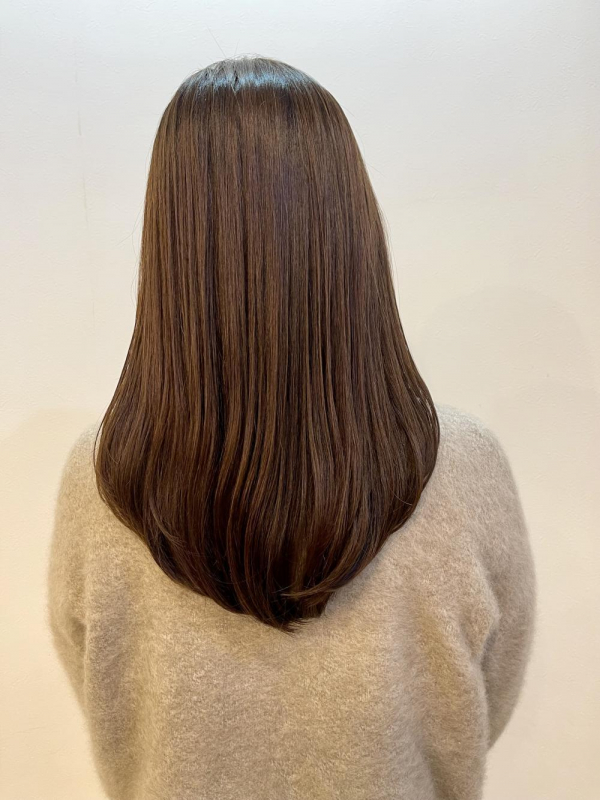 こんにちは!デザイナーのAyumiです!柔らかく透けるマロンブラウンベージュカラーおすすめです^ ^カラーの色持ちや艶を維持するためにも【Aujua髪質改善トリートメント】をプラスするのオス...