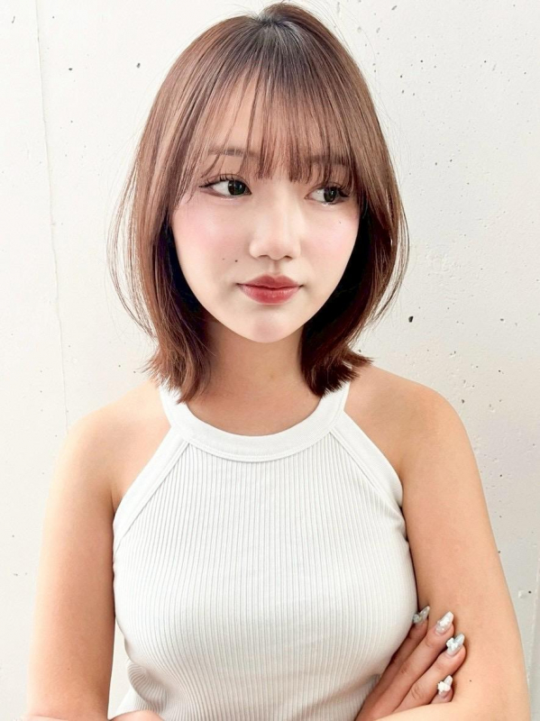 外ハネミディアム/レイヤーカット/ミディアムレイヤー/Aujuaトリートメント/髪質改善/縮毛矯正/20代/30代/40代