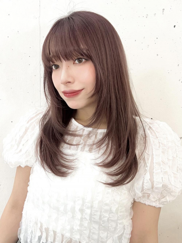 ブリーチなしカラーブラウンベージュレイヤーカット