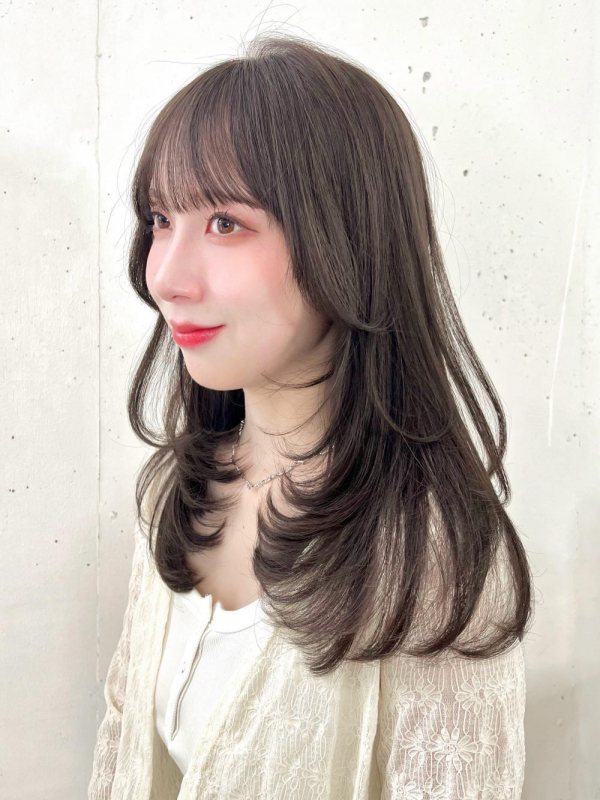 柔らかく透けるオリーブベージュくびれロングレイヤー