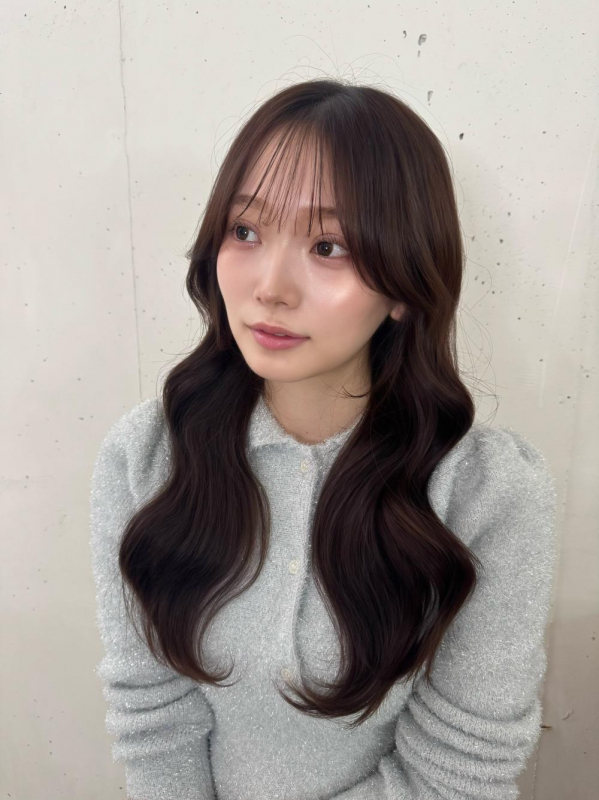 シースルーバングニュアンスカラーウェーブヘア