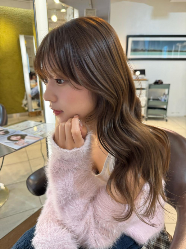 スタイリング | シースルーバング レイヤーカット 顔周りレイヤー アッシュカラー ベージュカラー ミルクティーベージュ ブリーチなしカラー Aujuaトリートメント 髪質改善トリートメント ツヤ髪スタイル 簡単スタイリングヘア |